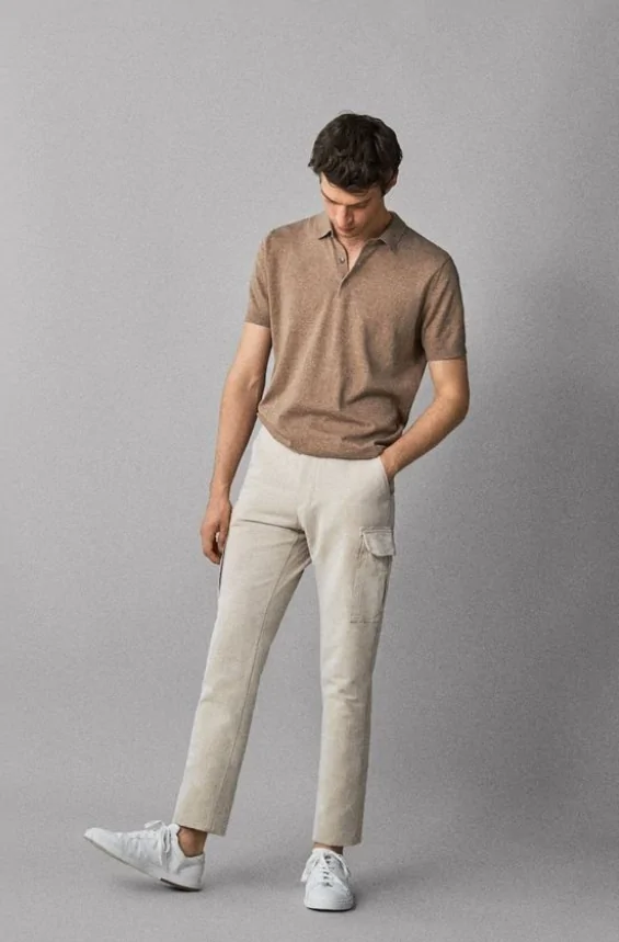 Polo shirt selalu jadi opsi aman dan elegan. Dibanding kaos biasa, polo memberi tampilan lebih formal tanpa terlihat kaku, sehingga cocok untuk situasi semi-formal. Celana kain slim fit juga menambah kesan rapi dan nyaman dipakai dalam durasi panjang.