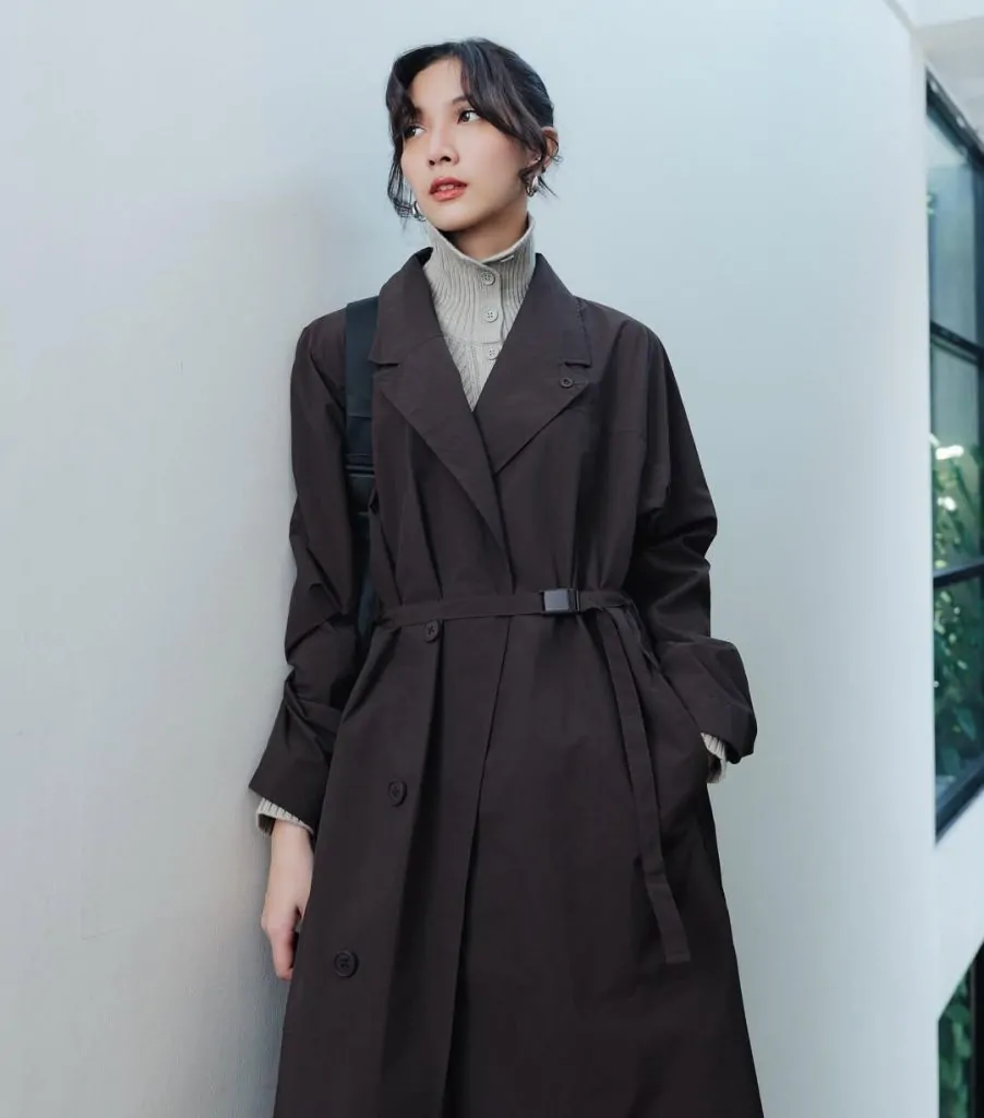 Gaya Sheila dengan trench coat panjang berbahan wool-blend bisa dijadikan referensi untuk acara formal atau semi-formal. Padukan dengan turtle neck berwarna netral dan sepatu boots untuk hasil akhir yang sophisticated. Trench coat ini juga bisa dipakai ke kantor atau dinner resmi, sehingga fungsional namun tetap stylish. Potongan panjangnya memberikan kesan dramatis yang membuat pemakainya lebih percaya diri.